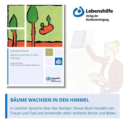 ✨📚 Werbung für unseren Verlag: 🌳 "Bäume wachsen in den Himmel: Über das Sterben und Trauern. Ein Buch für Menschen mit geistiger Behinderung." Dieses Werk in Leichter Sprache hilft mit einfühlsamen Geschichten dabei, schwere Themen leichter verständlich zu machen.