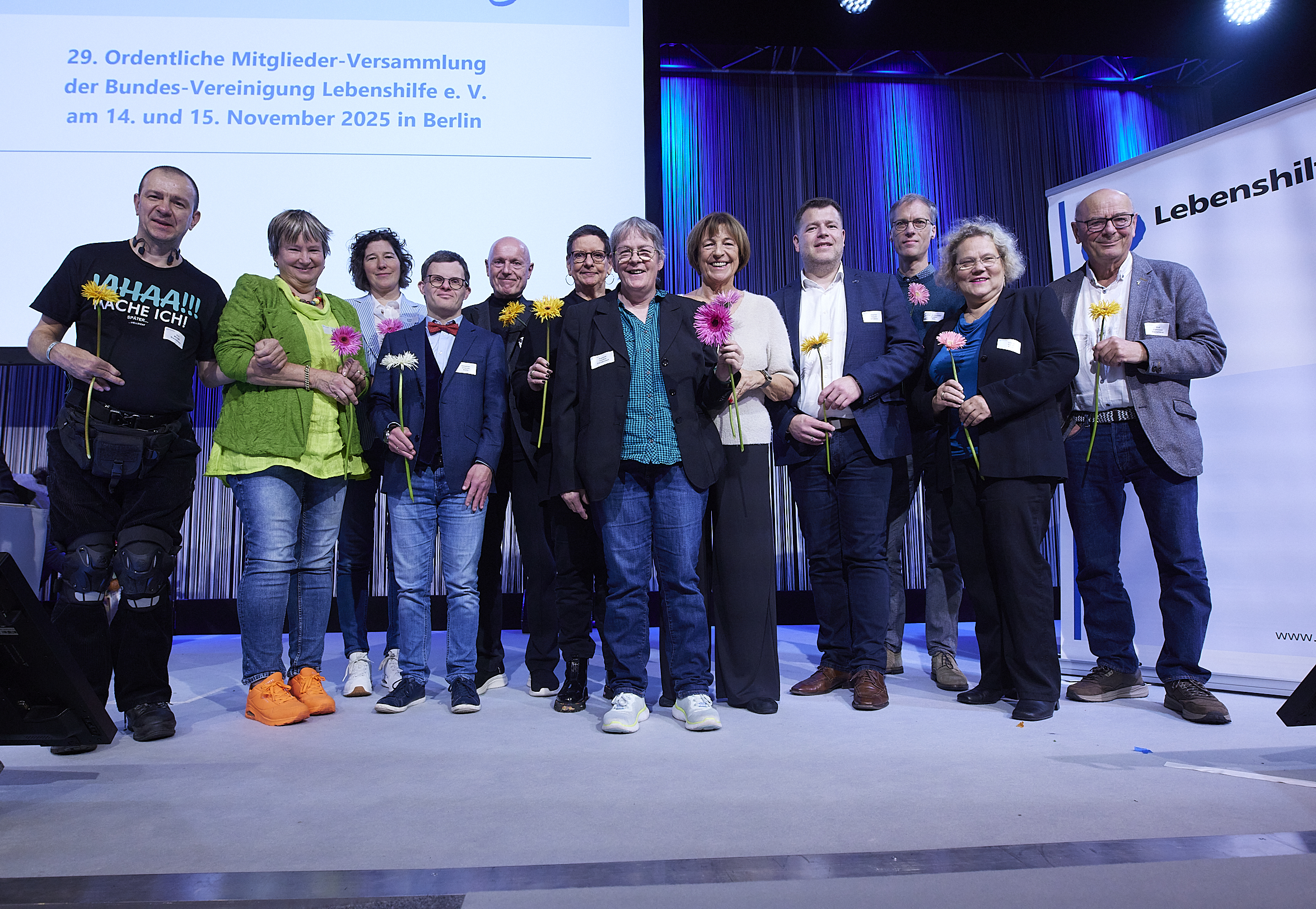 Auch drei Selbstvertreter mit Unterstützungsbedarf wurden in den Bundesvorstand* gewählt. Die Mitgliederversammlung beschließt außerdem: Die Bezeichnung „Menschen mit geistiger Behinderung“ soll durch „Menschen mit Unterstützungsbedarf“ ersetzt werden.